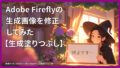 Adobe Fireflyの「生成塗りつぶし」についての解説です。ちょっとした修正ならプロンプトを変更して生成するよりも早く終わる場合があります。キーボードやマウスを使っての操作方法も紹介しています。